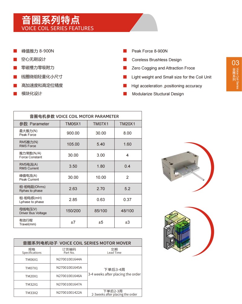 | 音圈直線電機(jī)參數(shù)VOICE COIL MOTOR PARAMETER | |||