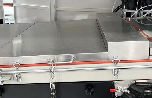 出口鏈條接駁段+寬皮帶輸送段,作為焊接區(qū)域出口側(cè)的延伸,保證焊接區(qū)殘氧量穩(wěn)定的同時,起到與后端設(shè)備對接的作用。