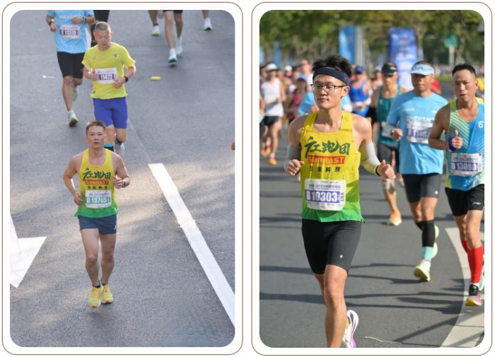 在比賽當(dāng)天,廣工大的隊(duì)員們穿著統(tǒng)一的日東科技定制運(yùn)動(dòng)服,在陽光明媚的早晨出發(fā)。他們用腳步丈量城市的每一寸土地,呼吸著清新的空氣,享受運(yùn)動(dòng)帶來的快樂!沿途觀眾的熱情加油聲此起彼伏,為選手們注入了源源不斷的動(dòng)力。最終,廣工大所有隊(duì)員都成功完成了全程的比賽,以實(shí)際行動(dòng)詮釋了什么叫堅(jiān)持到底,其中,黃文龍選手以2:45:53的凈成績(jī)跑完全程,在17195名參賽者中獲得了排名101的好成績(jī)!