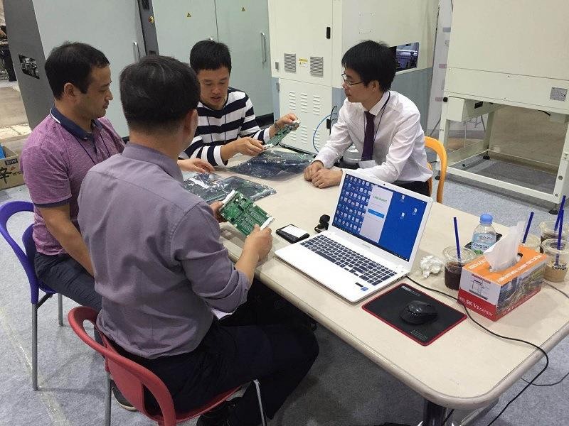 展會期間,前來參觀的觀展商絡(luò)繹不絕,對我們參展的機器——選擇性波峰焊SUNFLOW3產(chǎn)生了濃厚的興趣,在我們資深工程師的詳細解說下,觀展商對我們的機器有了更深的了解。不少客戶咨詢了我們的機器,并帶著產(chǎn)品到展會現(xiàn)場測試,紛紛對我們產(chǎn)品的技術(shù)水平表示高度的贊許和認可。