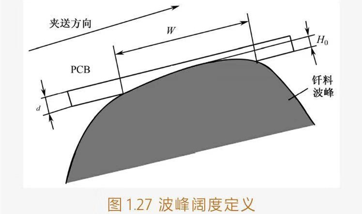 ?、俣x:當波峰高度處于正常作高度Ho(如7~8mm),PCB(板厚為d)位于其上且壓波峰的深度為2d/3時,沿傳送方向PCB下表面與波峰接蝕的長度稱為波峰的闊度。