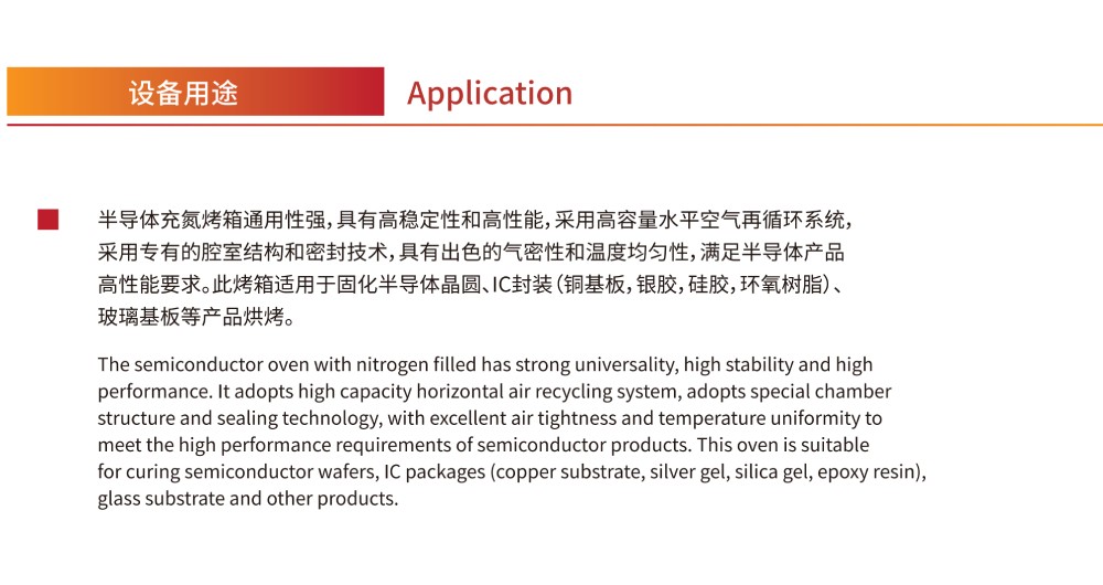 半導(dǎo)體充氮烤箱通用性強,具有高穩(wěn)定性和高性能,采用高容量水平空氣再循環(huán)系統(tǒng),采用專有的腔室結(jié)構(gòu)和密封技術(shù),具有出色的氣密性和溫度均勻性,滿足半導(dǎo)體產(chǎn)品高性能要求。此烤箱適用于固化半導(dǎo)體晶圓、IC封裝(銅基板,銀膠,硅膠,環(huán)氧樹脂)、玻璃基板等產(chǎn)品烘烤。