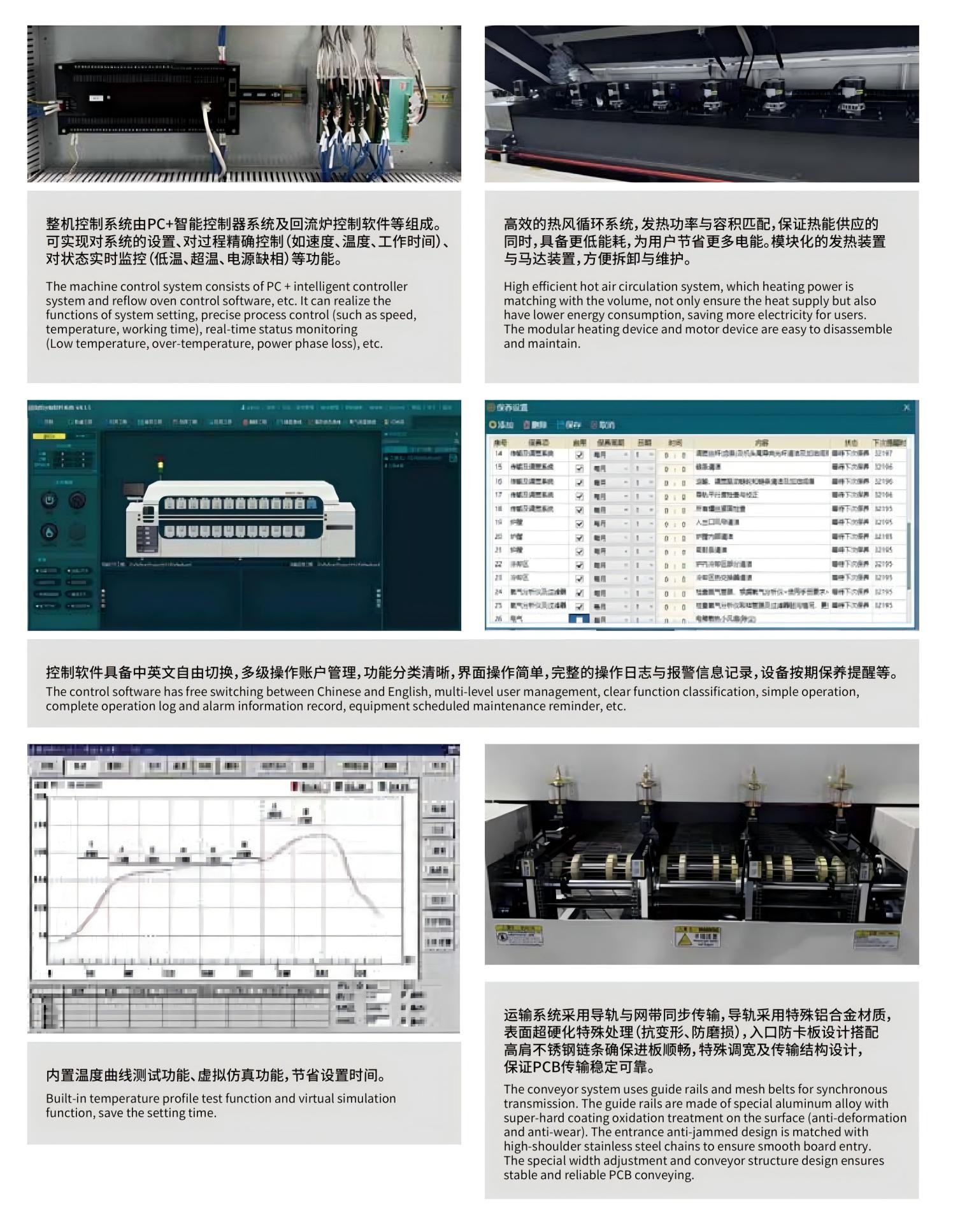 先進(jìn)的智能溫控系統(tǒng):實時監(jiān)測爐內(nèi)各溫區(qū)的溫度,并自動 閉環(huán)控制,溫度控制及曲線重復(fù)精度高;